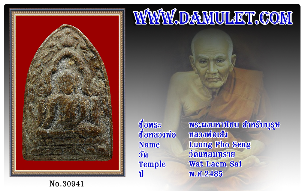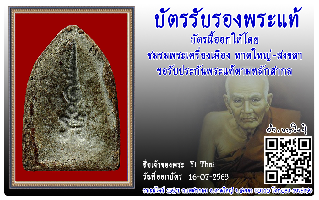พระผงมหานิยม หลวงพ่อเส้ง วัดแหลมทราย พ.ศ.2485 2563 16 ก.ค. 2020 440 share tweet share ชื่อพระ : พระผงมหานิยม สำหรับบุรุษชื่อหลวงพ่อ : หลวงพ่อเส้งวัด-ปี : วัดแหลมทราย พ.ศ.2485รหัส : No.30941วันที่ออกบัตร : 16-07-2563เจ้าของพระ : Yi Thai