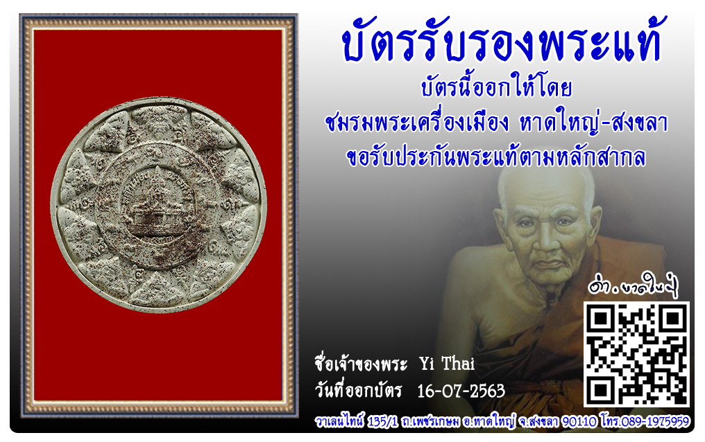 องค์พ่อจตุคามรามเทพ วัดพระบรมธาตุ พ.ศ.2547 2563 16 ก.ค. 2020 338 share tweet share ชื่อพระ : องค์พ่อจตุคามรามเทพประเภท : รุ่นบูรณะหลักเมือง เนื้อว่านขาววัด-ปี : วัดพระบรมธาตุ พ.ศ.2547รหัส : No.30943วันที่ออกบัตร : 16-07-2563เจ้าของพระ : Yi Thai