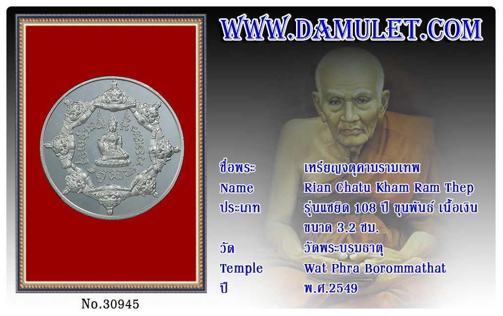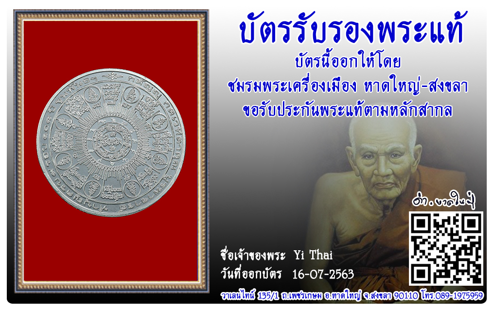 เหรียญจตุคามรามเทพ วัดพระบรมธาตุ พ.ศ.2549 2563 16 ก.ค. 2020 280 share tweet share ชื่อพระ : เหรียญจตุคามรามเทพประเภท : รุ่นแซยิด 108 ปี ขุนพันธ์ เนื้อเงิน ขนาด 3.2 ซม.วัด-ปี : วัดพระบรมธาตุ พ.ศ.2549รหัส : No.30945วันที่ออกบัตร : 16-07-2563เจ้าของพระ : Yi Thai