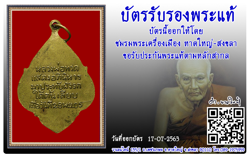 เหรียญหลวงปู่ทวด วัดพังเถียะ พ.ศ.2505 2563 17 ก.ค. 2020 1118 share tweet share ชื่อพระ : เหรียญหลวงปู่ทวดประเภท : พุ่มข้าวบิณฑ์ เนื้อทองฝาบาตรวัด-ปี : วัดพังเถียะ พ.ศ.2505รหัส : No.30954วันที่ออกบัตร : 17-07-2563