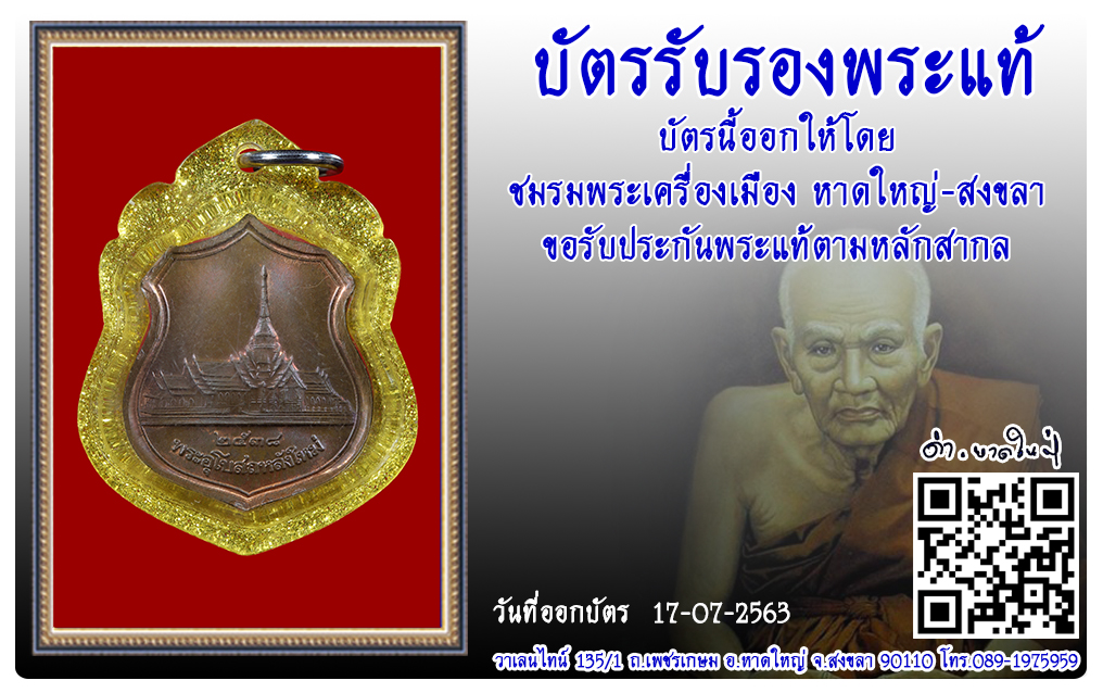 เหรียญหลวงพ่อโสธร วัดโสธรวราราม พ.ศ.2538 2563 17 ก.ค. 2020 481 share tweet share ชื่อพระ : เหรียญหลวงพ่อโสธรประเภท : ที่ระลึกพระอุโบสถหลังใหม่ เนื้อทองแดงวัด-ปี : วัดโสธรวราราม พ.ศ.2538รหัส : No.30955วันที่ออกบัตร : 17-07-2563
