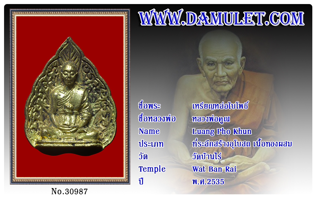 เหรียญหล่อใบโพธิ์ หลวงพ่อคูณ วัดบ้านไร่ พ.ศ.2535 2563 18 ก.ค. 2020 1162 share tweet share ชื่อพระ : เหรียญหล่อใบโพธิ์ชื่อหลวงพ่อ : หลวงพ่อคูณประเภท : ที่ระลึกสร้างอุโบสถ เนื้อทองผสมวัด-ปี : วัดบ้านไร่ พ.ศ.2535รหัส : No.30987วันที่ออกบัตร : 18-07-2563เจ้าของพระ : TT Heng Amulet