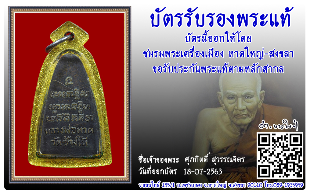 หลวงปู่ทวด วัดช้างให้ พ.ศ.2508 2563 18 ก.ค. 2020 291 share tweet share ชื่อพระ : หลวงปู่ทวดประเภท : หลังหนังสือ บล๊อคหน้าใหญ่วัด-ปี : วัดช้างให้ พ.ศ.2508รหัส : No.30990วันที่ออกบัตร : 18-07-2563เจ้าของพระ : ศุภกิตติ์ สุวรรณจิตร