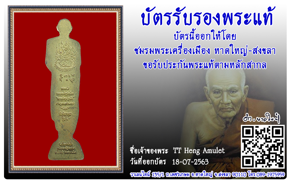 เหรียญรูปเหมือน หลวงพ่อพุธ วัดป่าเขาจำปา พ.ศ.2555 2563 18 ก.ค. 2020 526 share tweet share ชื่อพระ : เหรียญรูปเหมือนชื่อหลวงพ่อ : หลวงพ่อพุธประเภท : ที่ระลึกเททองหล่อรูปเหมือน เนื้อทองฝาบาตรวัด-ปี : วัดป่าเขาจำปา พ.ศ.2555รหัส : No.30994วันที่ออกบัตร : 18-07-2563เจ้าของพระ : TT Heng Amulet