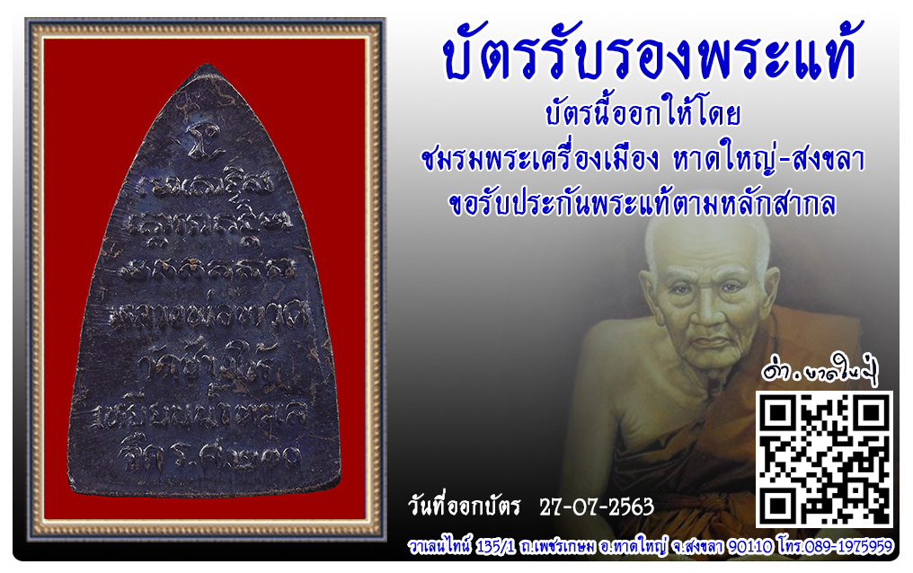 หลวงปู่ทวด วัดช้างให้ พ.ศ.2525 2563 27 ก.ค. 2020 309 share tweet share ชื่อพระ : หลวงปู่ทวดประเภท : พิมพ์กลีบบัว รุ่น ร.ศ.200วัด-ปี : วัดช้างให้ พ.ศ.2525รหัส : No.31237วันที่ออกบัตร : 27-07-2563