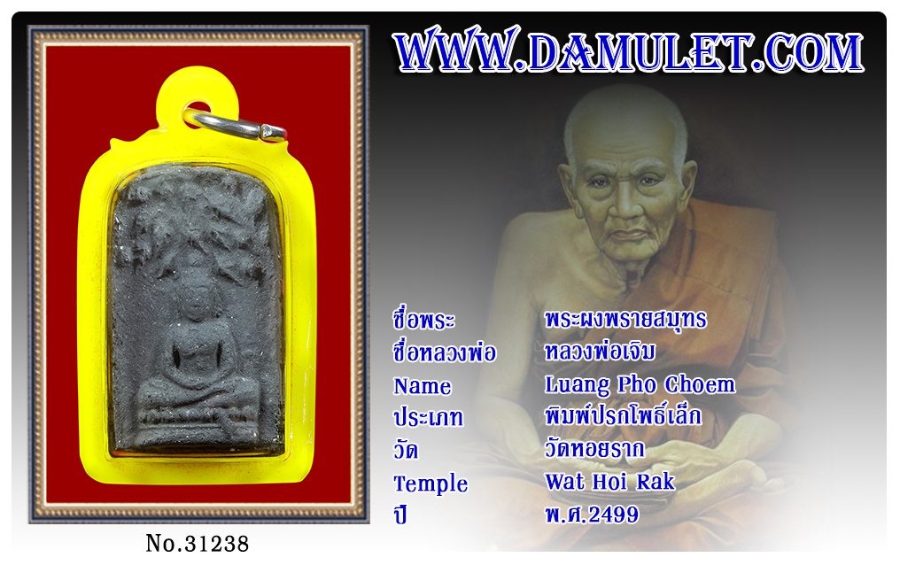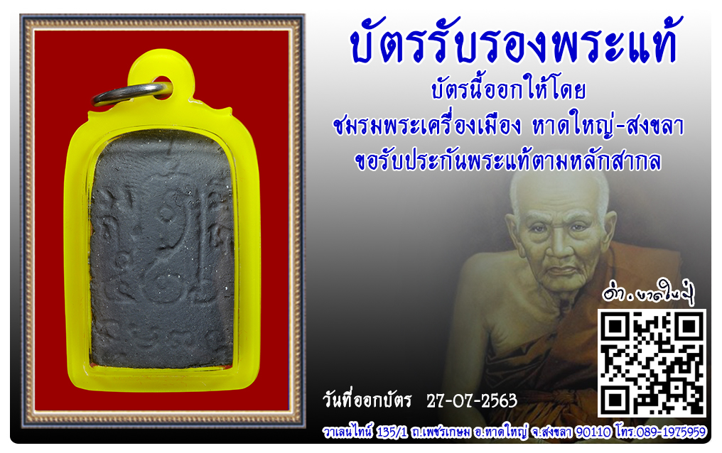 พระผงพรายสมุทร หลวงพ่อเจิม วัดหอยราก พ.ศ.2499 2563 27 ก.ค. 2020 372 share tweet share ชื่อพระ : พระผงพรายสมุทรชื่อหลวงพ่อ : หลวงพ่อเจิมประเภท : พิมพ์ปรกโพธิ์เล็กวัด-ปี : วัดหอยราก พ.ศ.2499รหัส : No.31238วันที่ออกบัตร : 27-07-2563