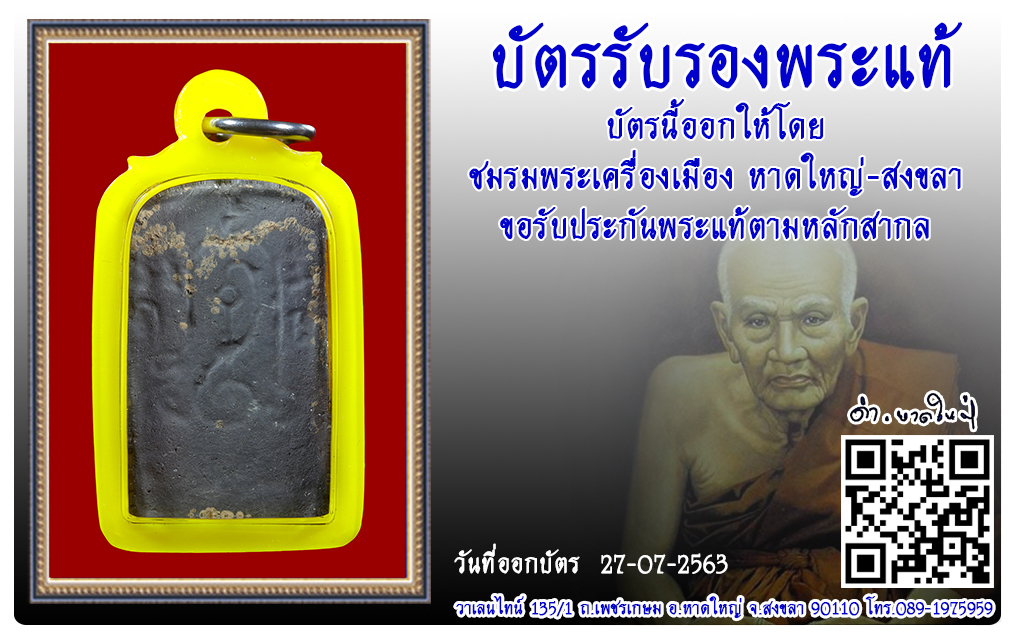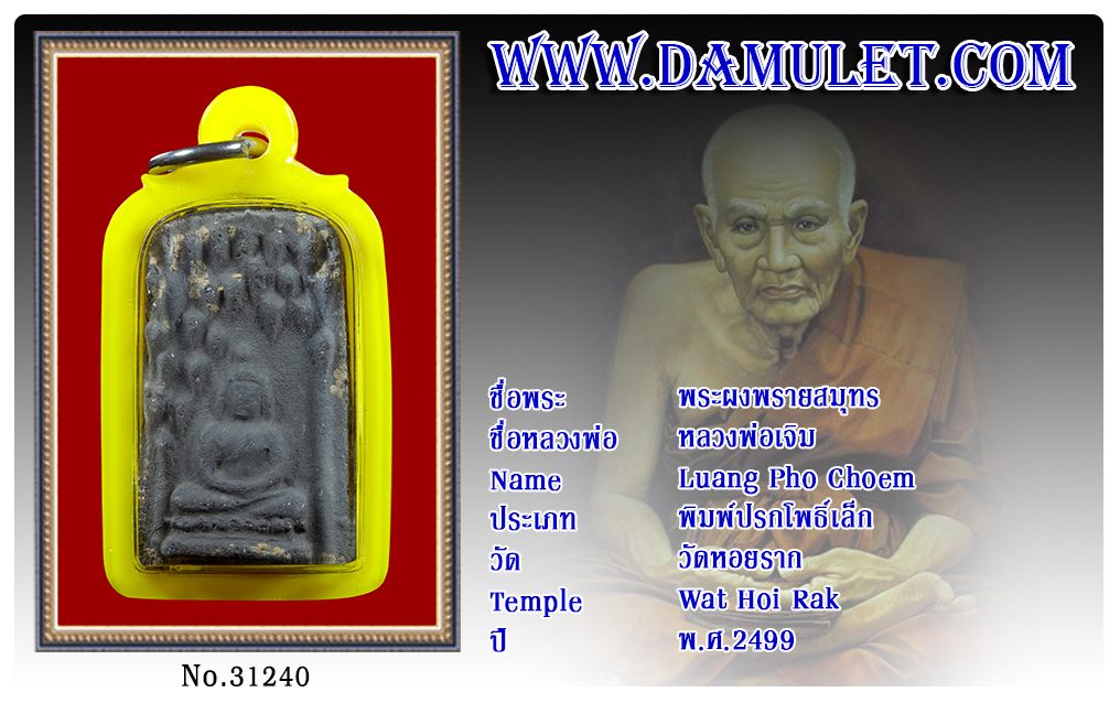 พระผงพรายสมุทร หลวงพ่อเจิม วัดหอยราก พ.ศ.2499 2563 27 ก.ค. 2020 313 share tweet share ชื่อพระ : พระผงพรายสมุทรชื่อหลวงพ่อ : หลวงพ่อเจิมประเภท : พิมพ์ปรกโพธิ์เล็กวัด-ปี : วัดหอยราก พ.ศ.2499รหัส : No.31240วันที่ออกบัตร : 27-07-2563