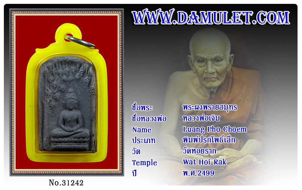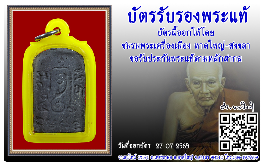 พระผงพรายสมุทร หลวงพ่อเจิม วัดหอยราก พ.ศ.2499 2563 27 ก.ค. 2020 259 share tweet share ชื่อพระ : พระผงพรายสมุทรชื่อหลวงพ่อ : หลวงพ่อเจิมประเภท : พิมพ์ปรกโพธิ์เล็กวัด-ปี : วัดหอยราก พ.ศ.2499รหัส : No.31242วันที่ออกบัตร : 27-07-2563
