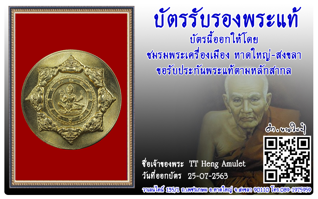 เหรียญหลวงปู่ทวด หลักเมืองปัตตานี พ.ศ.2550 2563 25 ก.ค. 2020 328 share tweet share ชื่อพระ : เหรียญหลวงปู่ทวดประเภท : รุ่นบูรณะหลักเมืองปัตตานี เนื้อทองฝาบาตร No.32468วัด-ปี : หลักเมืองปัตตานี พ.ศ.2550รหัส : No.31181วันที่ออกบัตร : 25-07-2563เจ้าของพระ : TT Heng Amulet