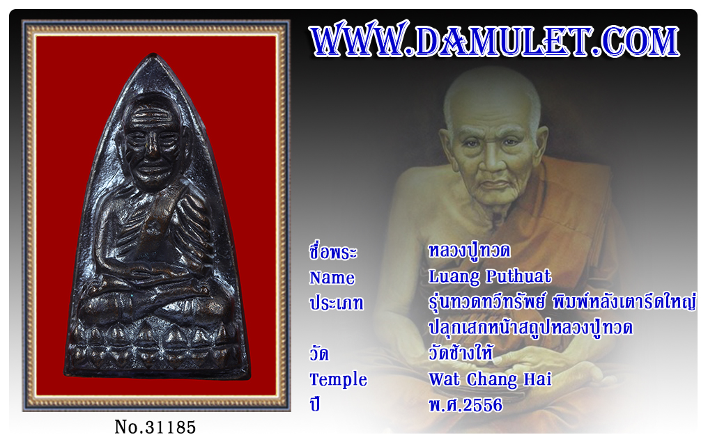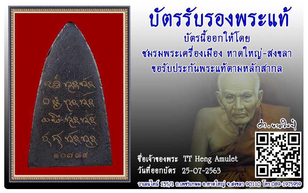 หลวงปู่ทวด วัดช้างให้ พ.ศ.2556 2563 25 ก.ค. 2020 633 share tweet share ชื่อพระ : หลวงปู่ทวดประเภท : รุ่นทวดทวีทรัพย์ พิมพ์หลังเตารีดใหญ่ ปลุกเสกหน้าสถูปหลวงปู่ทวดวัด-ปี : วัดช้างให้ พ.ศ.2556รหัส : No.31185วันที่ออกบัตร : 25-07-2563เจ้าของพระ : TT Heng Amulet