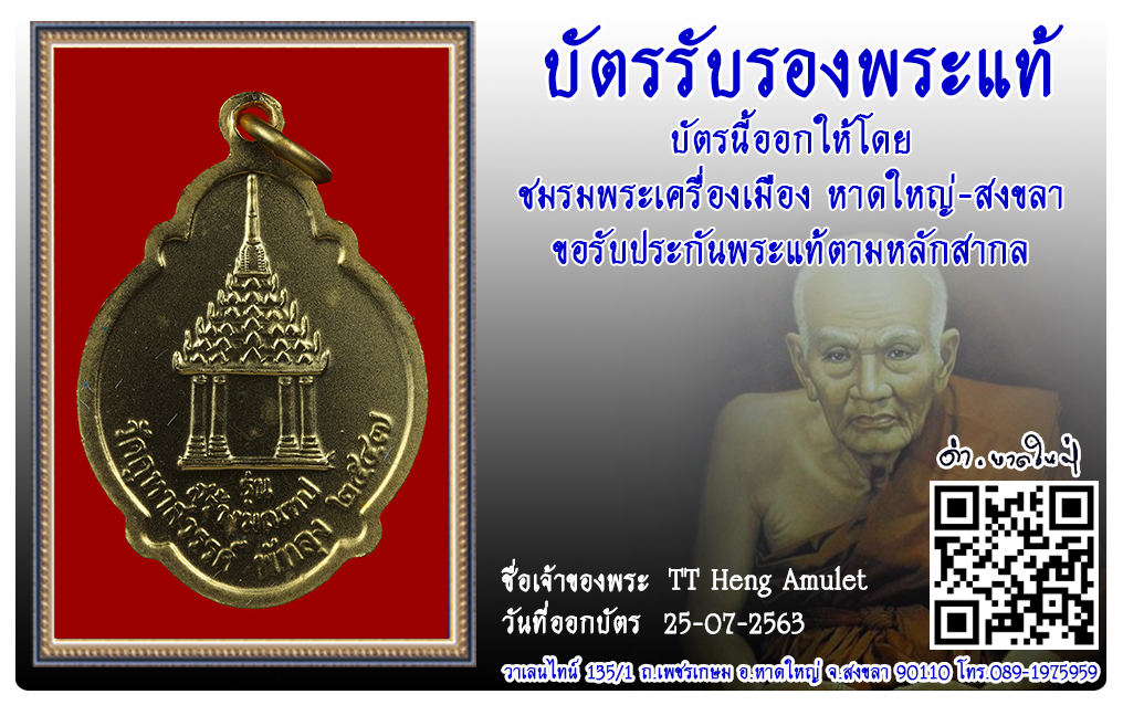 เหรียญหลวงปู่ทวด วัดคูหาสวรรค์ พ.ศ.2547 2563 25 ก.ค. 2020 489 share tweet share ชื่อพระ : เหรียญหลวงปู่ทวดประเภท : รุ่นสร้างมณฑป เนื้อทองแดงกะไหล่ทองวัด-ปี : วัดคูหาสวรรค์ พ.ศ.2547รหัส : No.31190วันที่ออกบัตร : 25-07-2563เจ้าของพระ : TT Heng Amulet