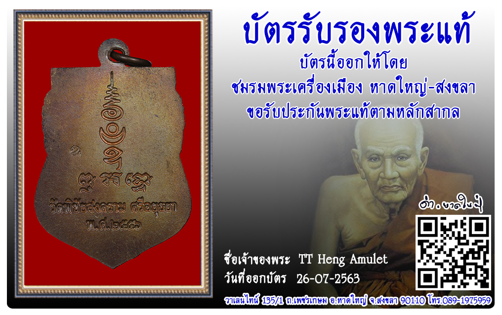 เหรียญหลวงพ่ออุดม วัดพิชัยสงคราม พ.ศ.2556 2563 26 ก.ค. 2020 537 share tweet share ชื่อพระ : เหรียญหลวงพ่ออุดมประเภท : พิมพ์เสมา เนื้อทองแดงวัด-ปี : วัดพิชัยสงคราม พ.ศ.2556รหัส : No.31211วันที่ออกบัตร : 26-07-2563เจ้าของพระ : TT Heng Amulet
