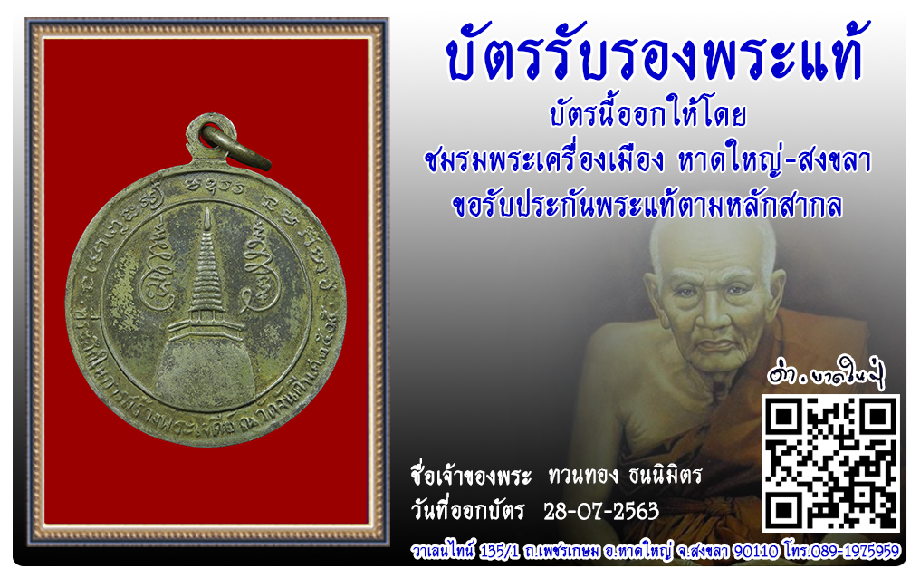 เหรียญพ่อท่านคล้าย วัดธาตุน้อย พ.ศ.2505 2563 28 ก.ค. 2020 385 share tweet share ชื่อพระ : เหรียญพ่อท่านคล้ายประเภท : กลมกลาง บล๊อคหูจุด เนื้ออัลปาก้าวัด-ปี : วัดธาตุน้อย พ.ศ.2505รหัส : No.31244วันที่ออกบัตร : 28-07-2563เจ้าของพระ : ทวนทอง ธนนิมิตร