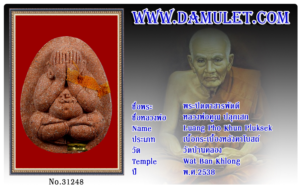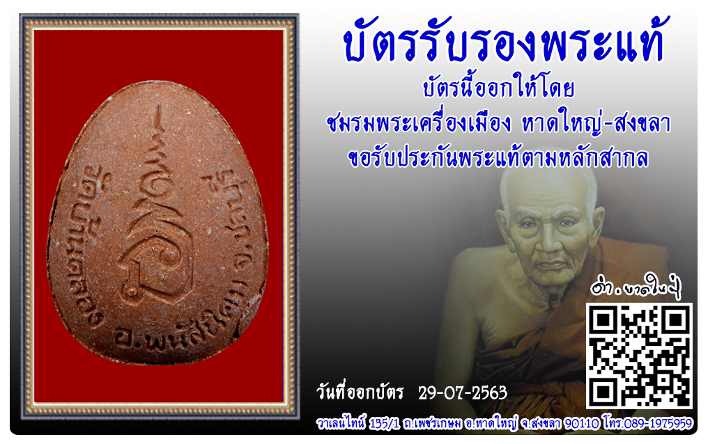 พระปิดตาสารพัดดี หลวงพ่อคูณ ปลุกเสก วัดบ้านคลอง พ.ศ.2538 2563 29 ก.ค. 2020 341 share tweet share ชื่อพระ : พระปิดตาสารพัดดีชื่อหลวงพ่อ : หลวงพ่อคูณ ปลุกเสกประเภท : เนื้อกระเบื้องหลังคาโบสถ์วัด-ปี : วัดบ้านคลอง พ.ศ.2538รหัส : No.31248วันที่ออกบัตร : 29-07-2563