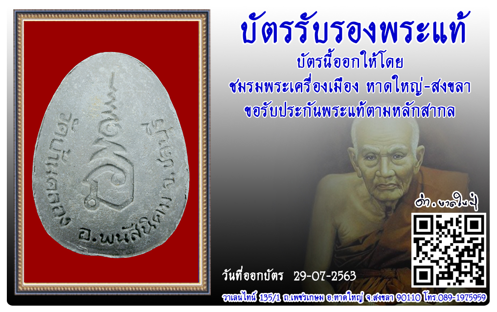 พระปิดตาสารพัดดี หลวงพ่อคูณ ปลุกเสก วัดบ้านคลอง พ.ศ.2538 2563 29 ก.ค. 2020 352 share tweet share ชื่อพระ : พระปิดตาสารพัดดีชื่อหลวงพ่อ : หลวงพ่อคูณ ปลุกเสกประเภท : เนื้อผงธูปวัด-ปี : วัดบ้านคลอง พ.ศ.2538รหัส : No.31249วันที่ออกบัตร : 29-07-2563