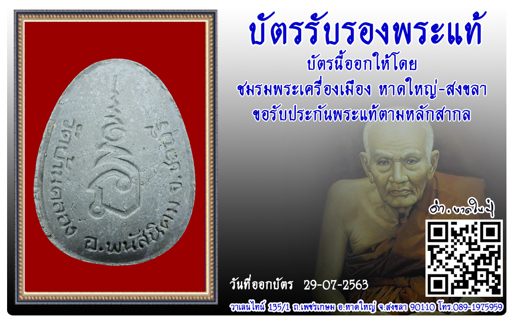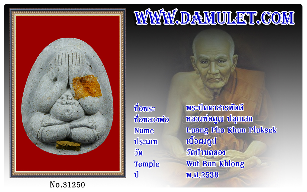 พระปิดตาสารพัดดี หลวงพ่อคูณ ปลุกเสก วัดบ้านคลอง พ.ศ.2538 2563 29 ก.ค. 2020 372 share tweet share ชื่อพระ : พระปิดตาสารพัดดีชื่อหลวงพ่อ : หลวงพ่อคูณ ปลุกเสกประเภท : เนื้อผงธูปวัด-ปี : วัดบ้านคลอง พ.ศ.2538รหัส : No.31250วันที่ออกบัตร : 29-07-2563