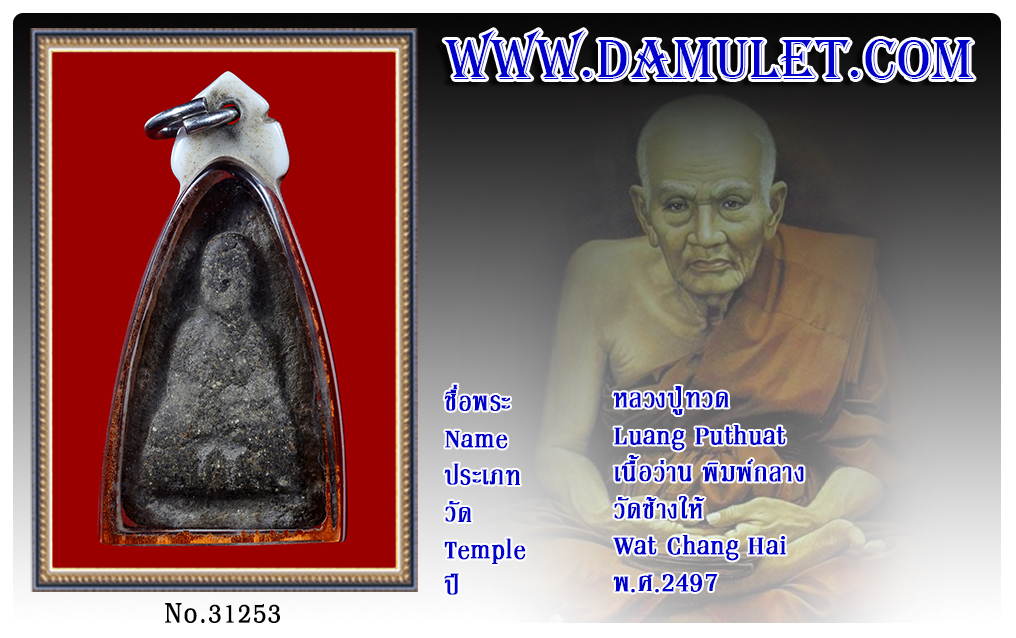 หลวงปู่ทวด วัดช้างให้ พ.ศ.2497 2563 29 ก.ค. 2020 289 share tweet share ชื่อพระ : หลวงปู่ทวดประเภท : เนื้อว่าน พิมพ์กลางวัด-ปี : วัดช้างให้ พ.ศ.2497รหัส : No.31253วันที่ออกบัตร : 29-07-2563