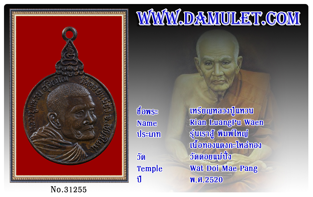 เหรียญหลวงปู่แหวน วัดดอยแม่ปั๋ง พ.ศ.2520 2563 29 ก.ค. 2020 332 share tweet share ชื่อพระ : เหรียญหลวงปู่แหวนประเภท : รุ่นเราสู้ พิมพ์ใหญ่ เนื้อทองแดงกะไหล่ทองวัด-ปี : วัดดอยแม่ปั๋ง พ.ศ.2520รหัส : No.31255วันที่ออกบัตร : 29-07-2563ชื่อเจ้าของพระ : TT Heng Amulet