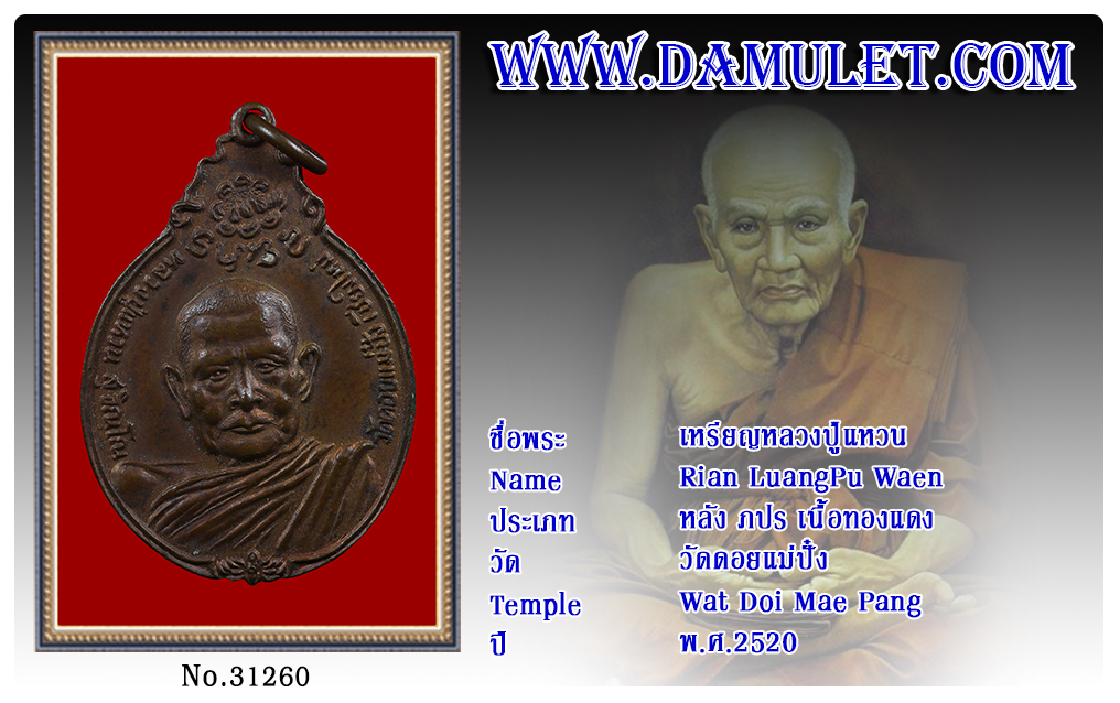 เหรียญหลวงปู่แหวน วัดดอยแม่ปั๋ง พ.ศ.2520 2563 29 ก.ค. 2020 323 share tweet share ชื่อพระ : เหรียญหลวงปู่แหวนประเภท : หลัง ภปร เนื้อทองแดงวัด-ปี : วัดดอยแม่ปั๋ง พ.ศ.2520รหัส : No.31260วันที่ออกบัตร : 29-07-2563ชื่อเจ้าของพระ : TT Heng Amulet