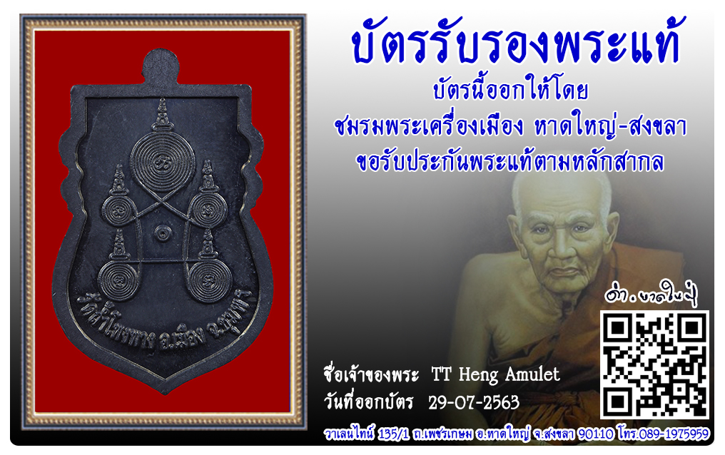 เหรียญหลวงพ่อบุญมา วัดถ้ำโพงพาง พ.ศ.2549 2563 29 ก.ค. 2020 593 share tweet share ชื่อพระ : เหรียญหลวงพ่อบุญมาประเภท : เนื้อตะกั่ววัด-ปี : วัดถ้ำโพงพาง พ.ศ.2549รหัส : No.31268วันที่ออกบัตร : 29-07-2563ชื่อเจ้าของพระ : TT Heng Amulet