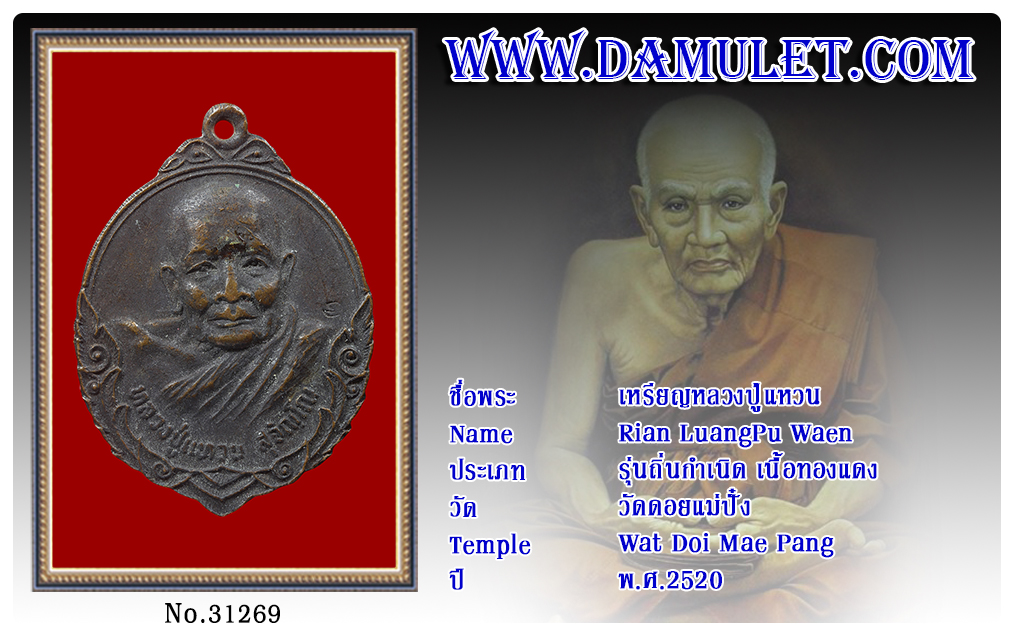 เหรียญหลวงปู่แหวนวัดดอยแม่ปั๋ง พ.ศ.2520 2563 30 ก.ค. 2020 288 share tweet share ชื่อพระ : เหรียญหลวงปู่แหวนประเภท : รุ่นถิ่นกำเนิด เนื้อทองแดงวัด-ปี : วัดดอยแม่ปั๋ง พ.ศ.2520รหัส : No.31269วันที่ออกบัตร : 30-07-2563ชื่อเจ้าของพระ : TT Heng Amulet