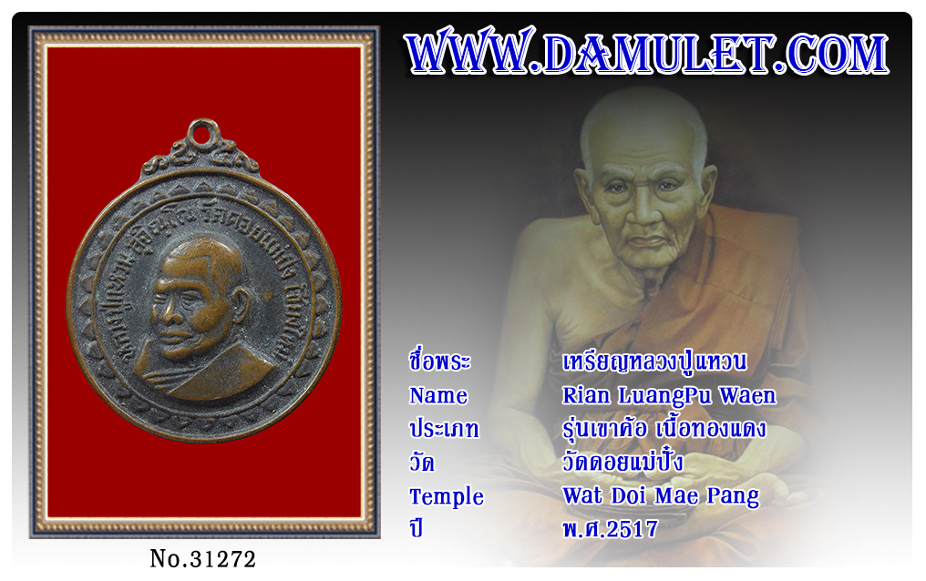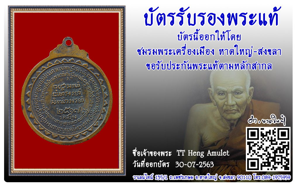 เหรียญหลวงปู่แหวน วัดดอยแม่ปั๋ง พ.ศ.2517 2563 30 ก.ค. 2020 301 share tweet share ชื่อพระ : เหรียญหลวงปู่แหวนประเภท : รุ่นเขาค้อ เนื้อทองแดงวัด-ปี : วัดดอยแม่ปั๋ง พ.ศ.2517รหัส : No.31272วันที่ออกบัตร : 30-07-2563ชื่อเจ้าของพระ : TT Heng Amulet