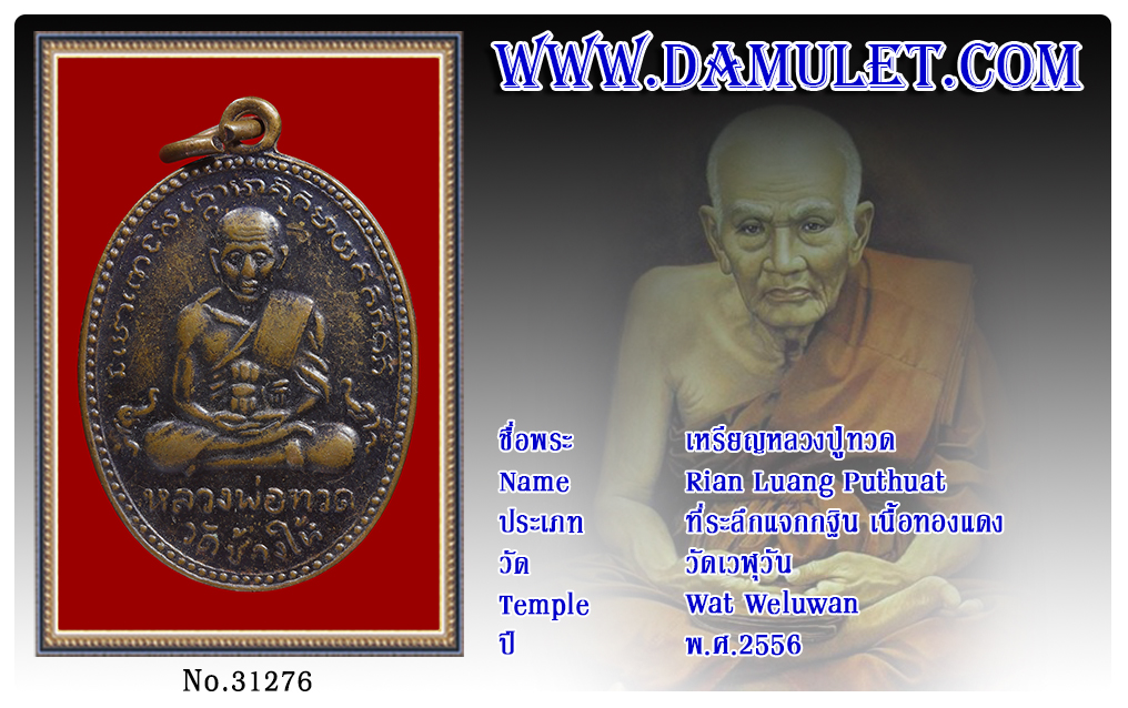 เหรียญหลวงปู่ทวด วัดเวฬุวัน พ.ศ.2556 2563 30 ก.ค. 2020 455 share tweet share ชื่อพระ : เหรียญหลวงปู่ทวดประเภท : ที่ระลึกแจกกฐิน เนื้อทองแดงวัด-ปี : วัดเวฬุวัน พ.ศ.2556รหัส : No.31276วันที่ออกบัตร : 30-07-2563ชื่อเจ้าของพระ : TT Heng Amulet