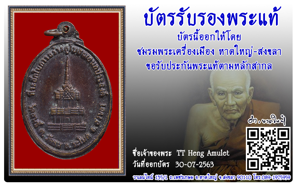 เหรียญตาหลวงดำ วัดสนธิ์ พ.ศ.2550 2563 30 ก.ค. 2020 490 share tweet share ชื่อพระ : เหรียญตาหลวงดำประเภท : ที่ระลึกสร้างอุโบสถ เนื้อทองแดงวัด-ปี : วัดสนธิ์ พ.ศ.2550รหัส : No.31277วันที่ออกบัตร : 30-07-2563ชื่อเจ้าของพระ : TT Heng Amulet
