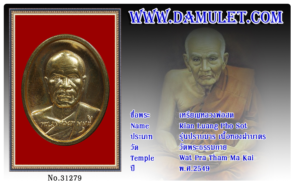 เหรียญหลวงพ่อสด วัดพระธรรมกาย พ.ศ.2549 2563 30 ก.ค. 2020 535 share tweet share ชื่อพระ : เหรียญหลวงพ่อสดประเภท : รุ่นปราบมาร เนื้อทองฝาบาตรวัด-ปี : วัดพระธรรมกาย พ.ศ.2549รหัส : No.31279วันที่ออกบัตร : 30-07-2563ชื่อเจ้าของพระ : TT Heng Amulet