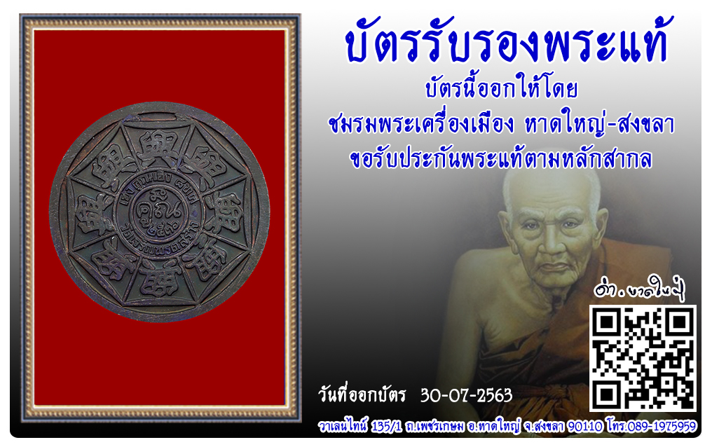 เหรียญหลวงพ่อคูณ วัดบ้านไร่ พ.ศ.2536 2563 30 ก.ค. 2020 305 share tweet share ชื่อพระ : เหรียญหลวงพ่อคูณประเภท : รุ่นเฮงคูณเฮง 8 ทิศ เนื้อทองแดงวัด-ปี : วัดบ้านไร่ พ.ศ.2536รหัส : No.31281วันที่ออกบัตร : 30-07-2563