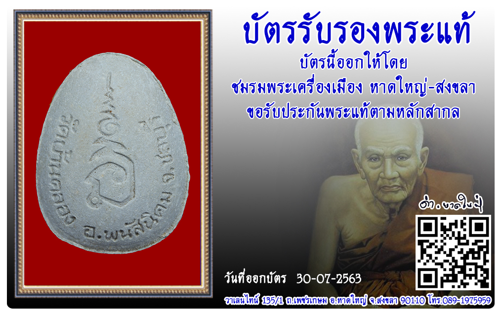 พระปิดตาสารพัดดี หลวงพ่อคูณ ปลุกเสก วัดบ้านคลอง พ.ศ.2538 2563 30 ก.ค. 2020 270 share tweet share ชื่อพระ : พระปิดตาสารพัดดีชื่อหลวงพ่อ : หลวงพ่อคูณ ปลุกเสกประเภท : เนื้อผงธูปวัด-ปี : วัดบ้านคลอง พ.ศ.2538รหัส : No.31285วันที่ออกบัตร : 30-07-2563