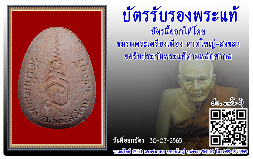 พระปิดตาสารพัดดี หลวงพ่อคูณ ปลุกเสก วัดบ้านคลอง พ.ศ.2538 2563 30 ก.ค. 2020 297 share tweet share ชื่อพระ : พระปิดตาสารพัดดีชื่อหลวงพ่อ : หลวงพ่อคูณ ปลุกเสกประเภท : เนื้อกระเบื้องหลังคาโบสถ์วัด-ปี : วัดบ้านคลอง พ.ศ.2538รหัส : No.31286วันที่ออกบัตร : 30-07-2563