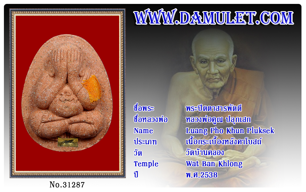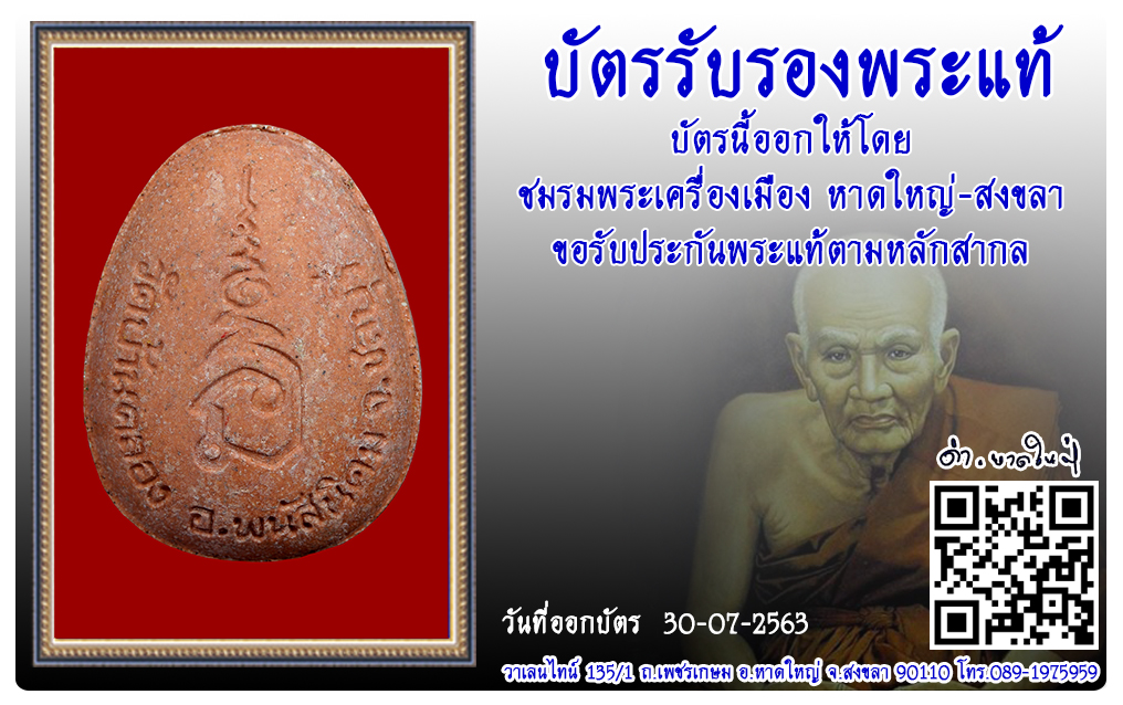 พระปิดตาสารพัดดี หลวงพ่อคูณ ปลุกเสก วัดบ้านคลอง พ.ศ.2538 2563 30 ก.ค. 2020 305 share tweet share ชื่อพระ : พระปิดตาสารพัดดีชื่อหลวงพ่อ : หลวงพ่อคูณ ปลุกเสกประเภท : เนื้อกระเบื้องหลังคาโบสถ์วัด-ปี : วัดบ้านคลอง พ.ศ.2538รหัส : No.31287วันที่ออกบัตร : 30-07-2563