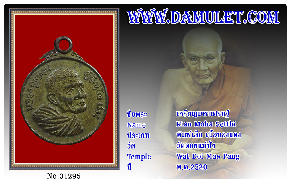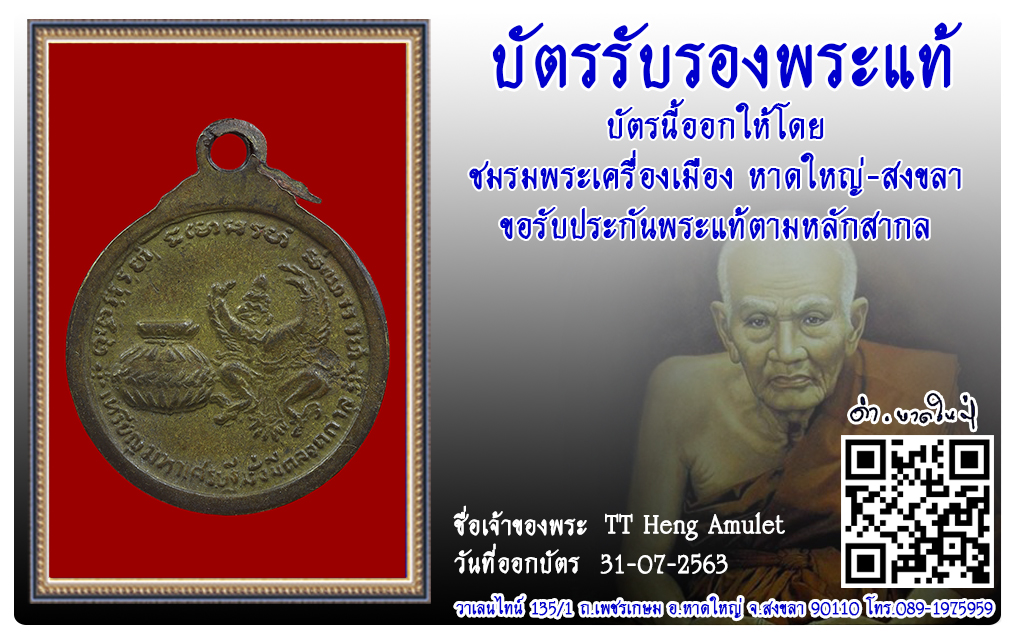เหรียญมหาเศรษฐี วัดดอยแม่ปั๋ง พ.ศ.2520 2563 31 ก.ค. 2020 305 share tweet share ชื่อพระ : เหรียญมหาเศรษฐีประเภท : พิมพ์เล็ก เนื้อทองแดงวัด-ปี : วัดดอยแม่ปั๋ง พ.ศ.2520รหัส : No.31295วันที่ออกบัตร : 31-07-2563เจ้าของพระ : TT Heng Amulet