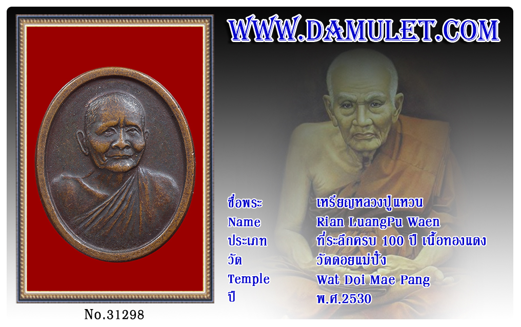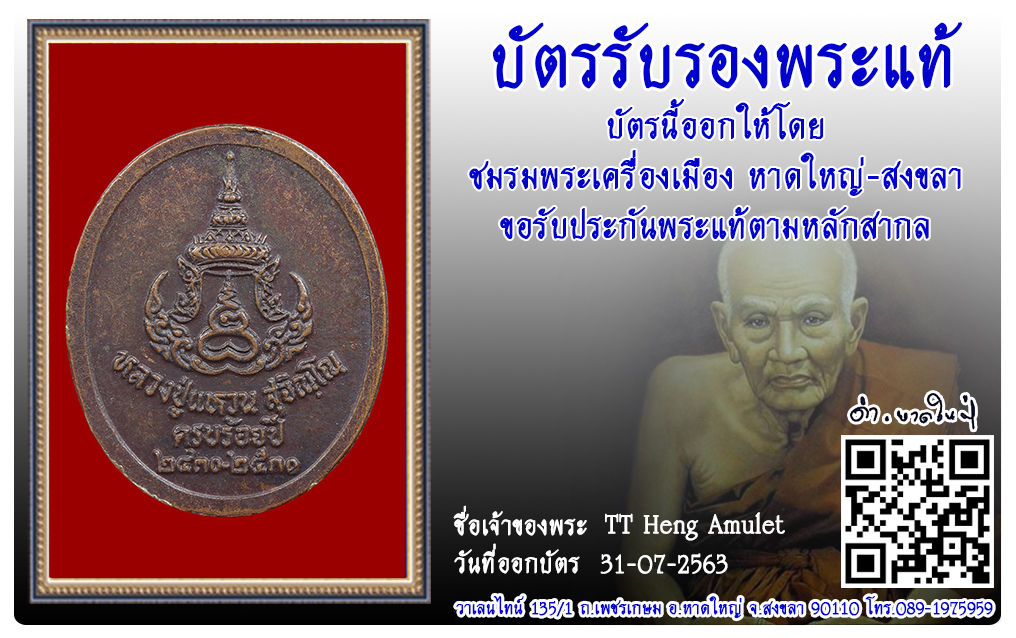 เหรียญหลวงปู่แหวน วัดดอยแม่ปั๋ง พ.ศ.2530 2563 31 ก.ค. 2020 355 share tweet share ชื่อพระ : เหรียญหลวงปู่แหวนประเภท : ที่ระลึกครบ 100 ปี เนื้อทองแดงวัด-ปี : วัดดอยแม่ปั๋ง พ.ศ.2530รหัส : No.31298วันที่ออกบัตร : 31-07-2563เจ้าของพระ : TT Heng Amulet