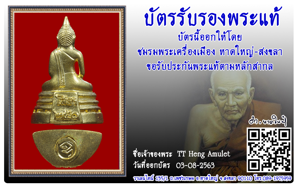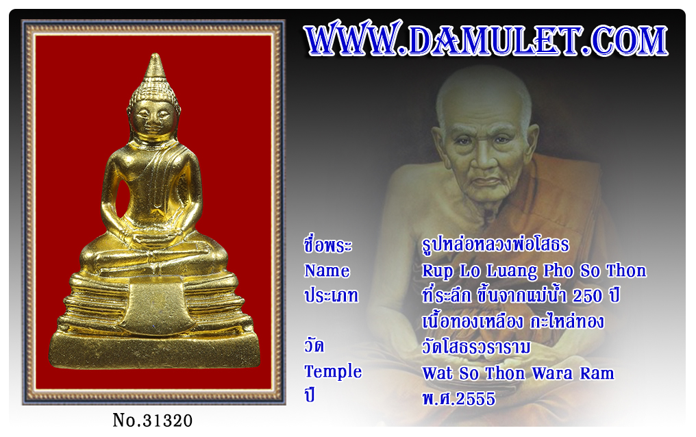รูปหล่อหลวงพ่อโสธร วัดโสธรวราราม พ.ศ.2555 2563 03 ส.ค. 2020 1029 share tweet share ชื่อพระ : รูปหล่อหลวงพ่อโสธรประเภท : ที่ระลึก ขึ้นจากแม่น้ำ 250 ปี เนื้อทองเหลือง กะไหล่ทองวัด-ปี : วัดโสธรวราราม พ.ศ.2555รหัส : No.31320วันที่ออกบัตร : 03-08-2563เจ้าของพระ : TT Heng Amulet