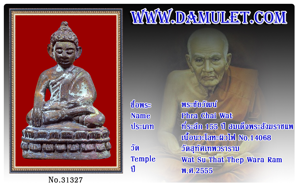 พระชัยวัฒน์ วัดสุทัศเทพวราราม พ.ศ.2555 2563 03 ส.ค. 2020 308 share tweet share ชื่อพระ : พระชัยวัฒน์ประเภท : ที่ระลึก 155 ปี สมเด็จพระสังฆราชแพ เนื้อนวะโลหะ ผิวไฟ No.14068วัด-ปี : วัดสุทัศเทพวราราม พ.ศ.2555รหัส : No.31327วันที่ออกบัตร : 03-08-2563เจ้าของพระ : TT Heng Amulet