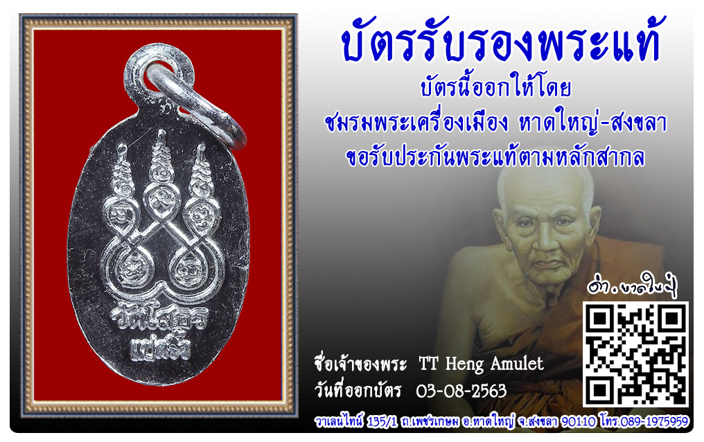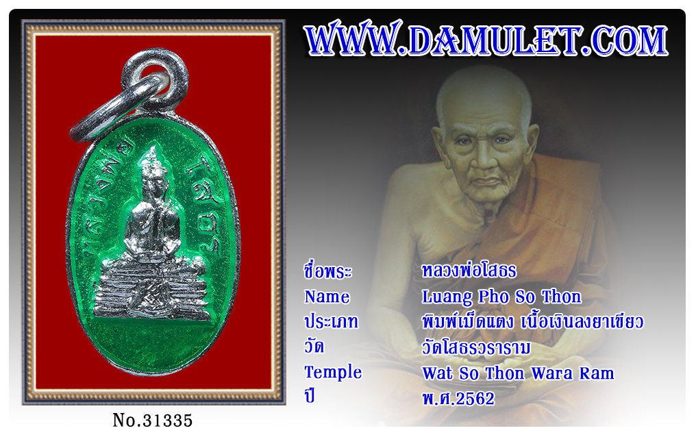 หลวงพ่อโสธร วัดโสธรวราราม พ.ศ.2562 2563 03 ส.ค. 2020 390 share tweet share ชื่อพระ : หลวงพ่อโสธรประเภท : พิมพ์เม็ดแตง เนื้อเงินลงยาเขียววัด-ปี : วัดโสธรวราราม พ.ศ.2562รหัส : No.31335วันที่ออกบัตร : 03-08-2563เจ้าของพระ : TT Heng Amulet