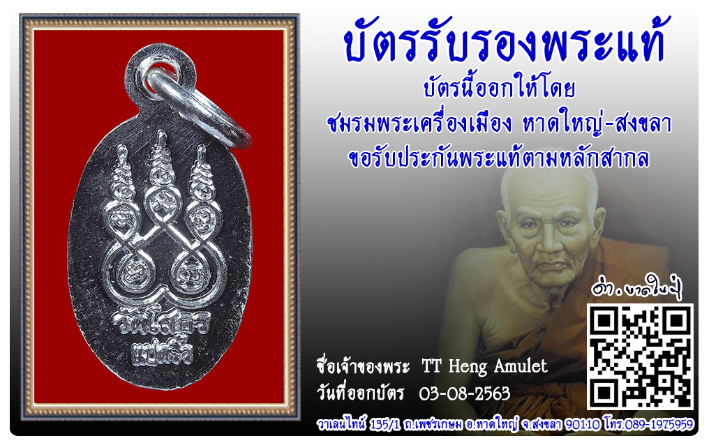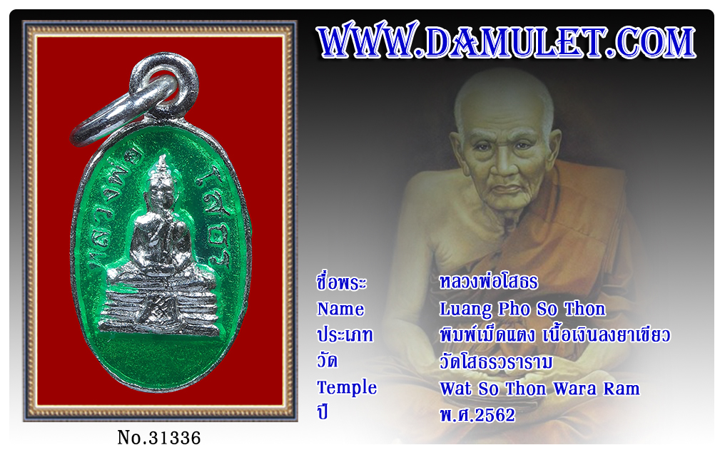หลวงพ่อโสธร วัดโสธรวราราม พ.ศ.2562 2563 03 ส.ค. 2020 460 share tweet share ชื่อพระ : หลวงพ่อโสธรประเภท : พิมพ์เม็ดแตง เนื้อเงินลงยาเขียววัด-ปี : วัดโสธรวราราม พ.ศ.2562รหัส : No.31336วันที่ออกบัตร : 03-08-2563เจ้าของพระ : TT Heng Amulet