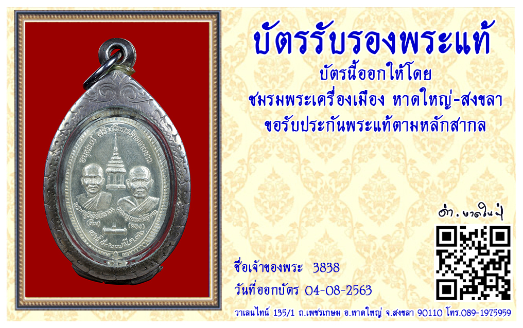 เหรียญหลวงปู่ทวด อาจารย์นอง วัดทรายขาว พ.ศ.2536 2563 04 ส.ค. 2020 546 share tweet share ชื่อพระ : เหรียญหลวงปู่ทวดชื่อหลวงพ่อ : อาจารย์นองประเภท : รุ่นงสร้างวิหาร เนื้อเงินวัด-ปี : วัดทรายขาว พ.ศ.2536รหัส : No.31340วันที่ออกบัตร : 04-08-2563เจ้าของพระ : 3838