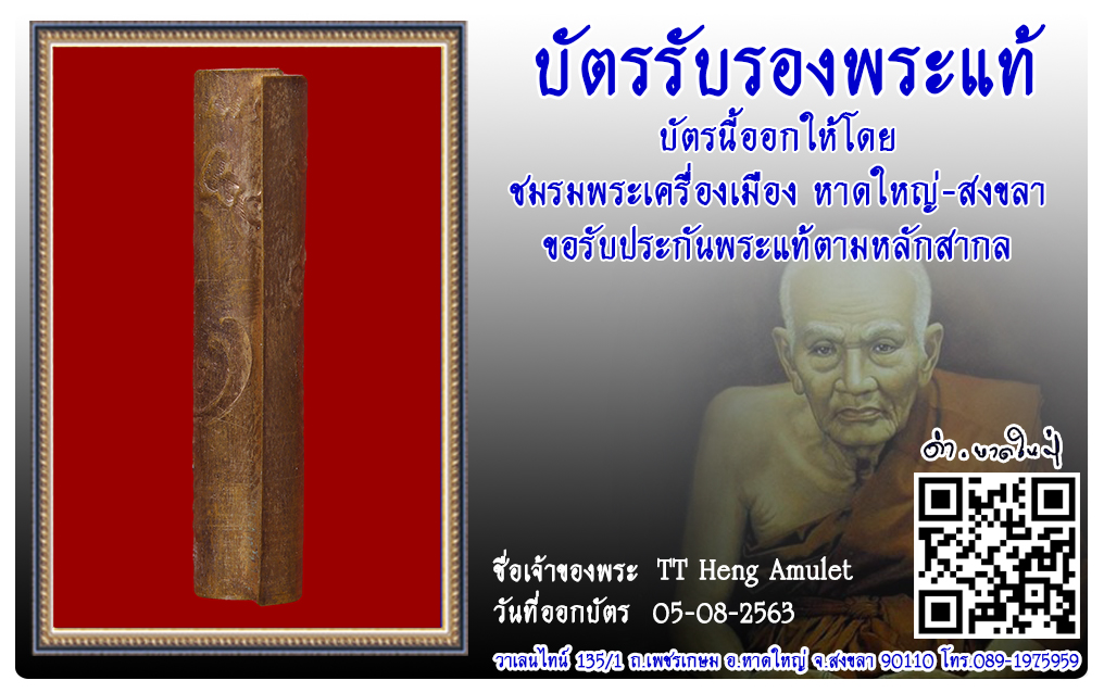 ตะกรุดทองแดง อาจารย์อุทัย วัดวิหารสูง จ.พัทลุง 2563 05 ส.ค. 2020 1545 share tweet share ชื่อพระ : ตะกรุดทองแดงชื่อหลวงพ่อ : อาจารย์อุทัยวัด-ปี : วัดวิหารสูง จ.พัทลุงรหัส : No.31342วันที่ออกบัตร : 05-08-2563เจ้าของพระ : TT Heng Amulet