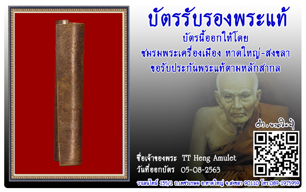 ตะกรุดทองแดง อาจารย์อุทัย วัดวิหารสูง จ.พัทลุง 2563 05 ส.ค. 2020 330 share tweet share ชื่อพระ : ตะกรุดทองแดงชื่อหลวงพ่อ : อาจารย์อุทัยวัด-ปี : วัดวิหารสูง จ.พัทลุงรหัส : No.31345วันที่ออกบัตร : 05-08-2563เจ้าของพระ : TT Heng Amulet
