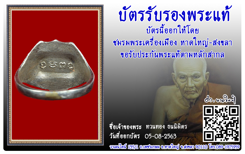 แหวนหลวงปู่ทวด วัดช้างให้ พ.ศ.2508 2563 05 ส.ค. 2020 327 share tweet share ชื่อพระ : แหวนหลวงปู่ทวดประเภท : เนื้ออัลปาก้าวัด-ปี : วัดช้างให้ พ.ศ.2508รหัส : No.31357วันที่ออกบัตร : 05-08-2563เจ้าของพระ : ทวนทอง ธนนิมิตร