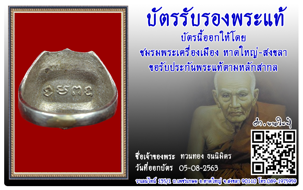 แหวนหลวงปู่ทวด วัดช้างให้ พ.ศ.2508 2563 05 ส.ค. 2020 969 share tweet share ชื่อพระ : แหวนหลวงปู่ทวดประเภท : เนื้ออัลปาก้าวัด-ปี : วัดช้างให้ พ.ศ.2508รหัส : No.31358วันที่ออกบัตร : 05-08-2563เจ้าของพระ : ทวนทอง ธนนิมิตร