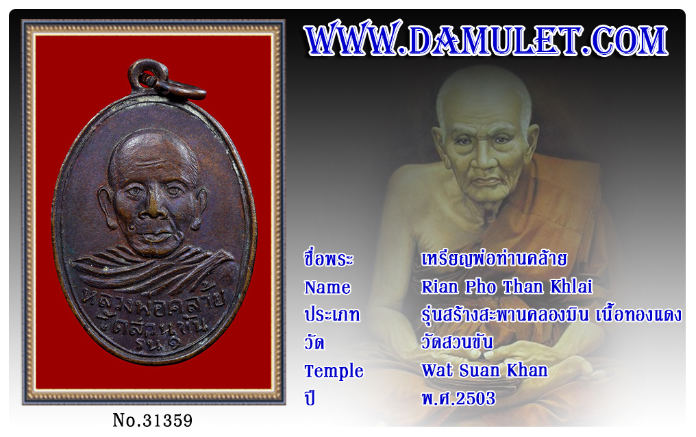 เหรียญพ่อท่านคล้าย วัดสวนขัน พ.ศ.2503 2563 05 ส.ค. 2020 386 share tweet share ชื่อพระ : เหรียญพ่อท่านคล้ายประเภท : รุ่นสร้างสะพานคลองมิน เนื้อทองแดงวัด-ปี : วัดสวนขัน พ.ศ.2503รหัส : No.31359วันที่ออกบัตร : 05-08-2563เจ้าของพระ : ทวนทอง ธนนิมิตร