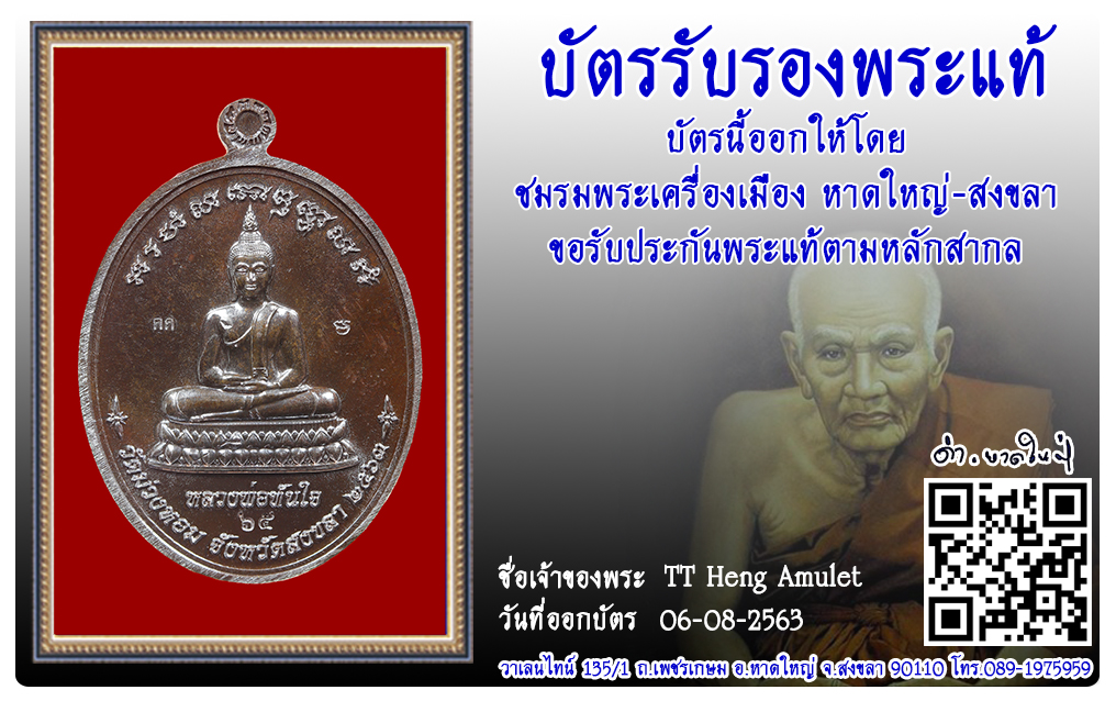 เหรียญหลวงพ่อสมหวัง วัดม่วงหอม พ.ศ.2563 2563 06 ส.ค. 2020 583 share tweet share ชื่อพระ : เหรียญหลวงพ่อสมหวังประเภท : รุ่น สมหวังทันใจ เนื้อนวะหน้าทองคำ No.65วัด-ปี : วัดม่วงหอม พ.ศ.2563รหัส : No.31370วันที่ออกบัตร : 06-08-2563ชื่อเจ้าของพระ : TT Heng Amulet