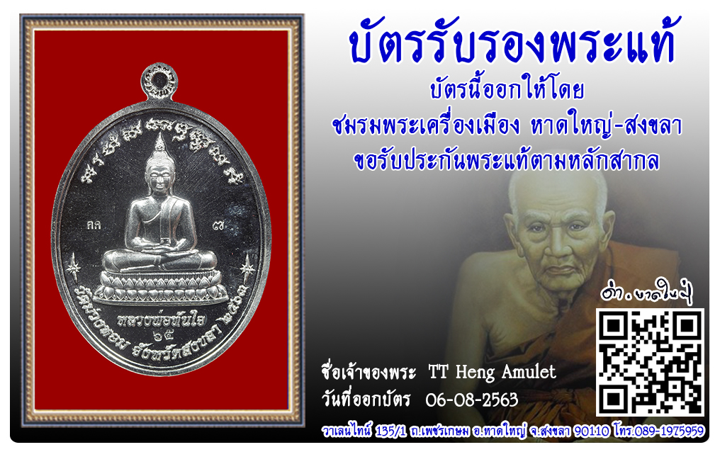 เหรียญหลวงพ่อสมหวัง วัดม่วงหอม พ.ศ.2563 2563 06 ส.ค. 2020 329 share tweet share ชื่อพระ : เหรียญหลวงพ่อสมหวังประเภท : รุ่น สมหวังทันใจ เนื้ออัลปาก้าหน้าสัตตะ No.65วัด-ปี : วัดม่วงหอม พ.ศ.2563รหัส : No.31371วันที่ออกบัตร : 06-08-2563ชื่อเจ้าของพระ : TT Heng Amulet