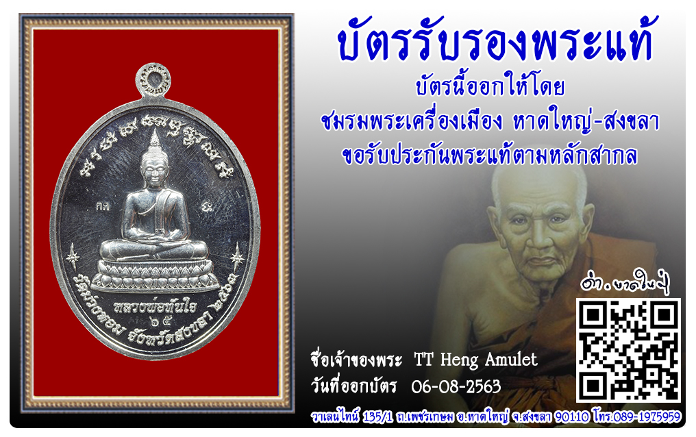 เหรียญหลวงพ่อสมหวัง วัดม่วงหอม พ.ศ.2563 2563 06 ส.ค. 2020 316 share tweet share ชื่อพระ : เหรียญหลวงพ่อสมหวังประเภท : รุ่น สมหวังทันใจ เนื้ออัลปาก้าลงยาธงชาติ No.65วัด-ปี : วัดม่วงหอม พ.ศ.2563รหัส : No.31372วันที่ออกบัตร : 06-08-2563ชื่อเจ้าของพระ : TT Heng Amulet