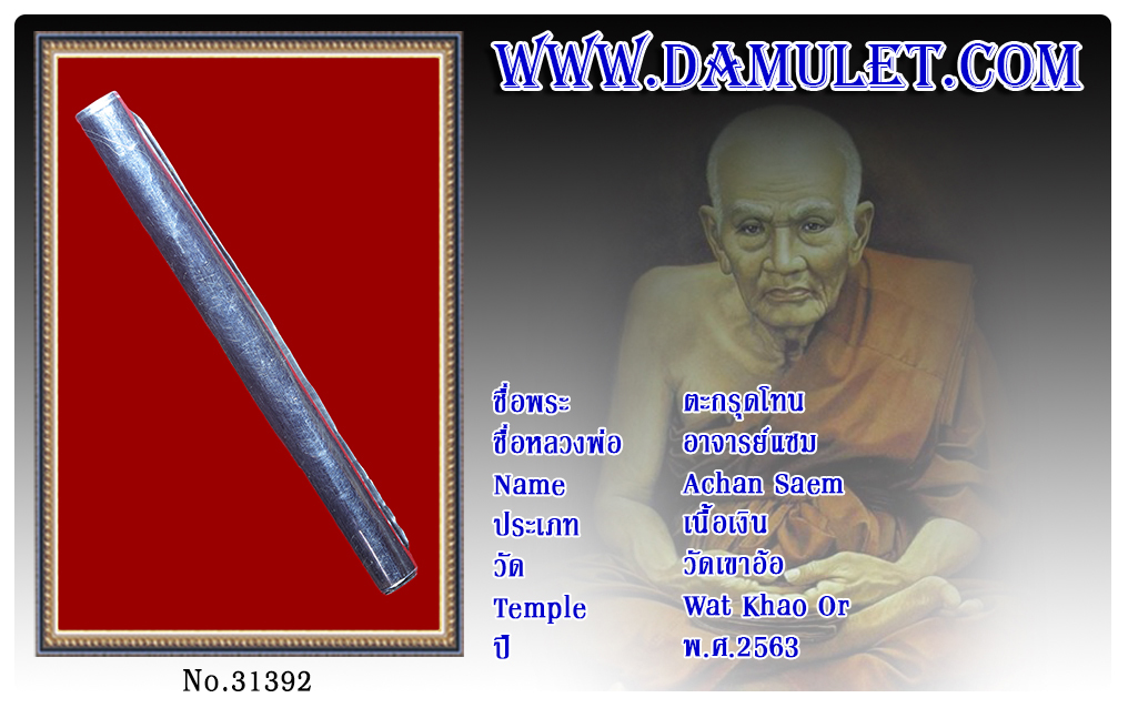 ตะกรุดโทน อาจารย์แซม วัดเขาอ้อ พ.ศ.2563 2563 08 ส.ค. 2020 304 share tweet share ชื่อพระ : ตะกรุดโทนชื่อหลวงพ่อ : อาจารย์แซมประเภท : เนื้อเงินวัด-ปี : วัดเขาอ้อ พ.ศ.2563รหัส : No.31392วันที่ออกบัตร : 08-08-2563ชื่อเจ้าของพระ : TT Heng Amulet