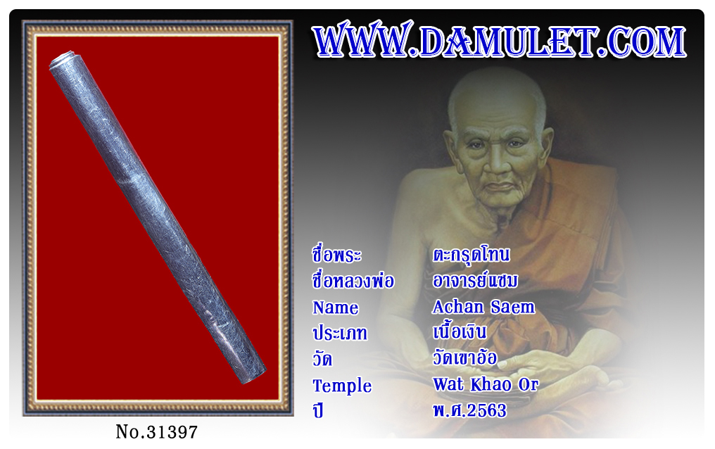 ตะกรุดโทน อาจารย์แซม วัดเขาอ้อ พ.ศ.2563 2563 08 ส.ค. 2020 300 share tweet share ชื่อพระ : ตะกรุดโทนชื่อหลวงพ่อ : อาจารย์แซมประเภท : เนื้อเงินวัด-ปี : วัดเขาอ้อ พ.ศ.2563รหัส : No.31397วันที่ออกบัตร : 08-08-2563ชื่อเจ้าของพระ : TT Heng Amulet
